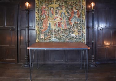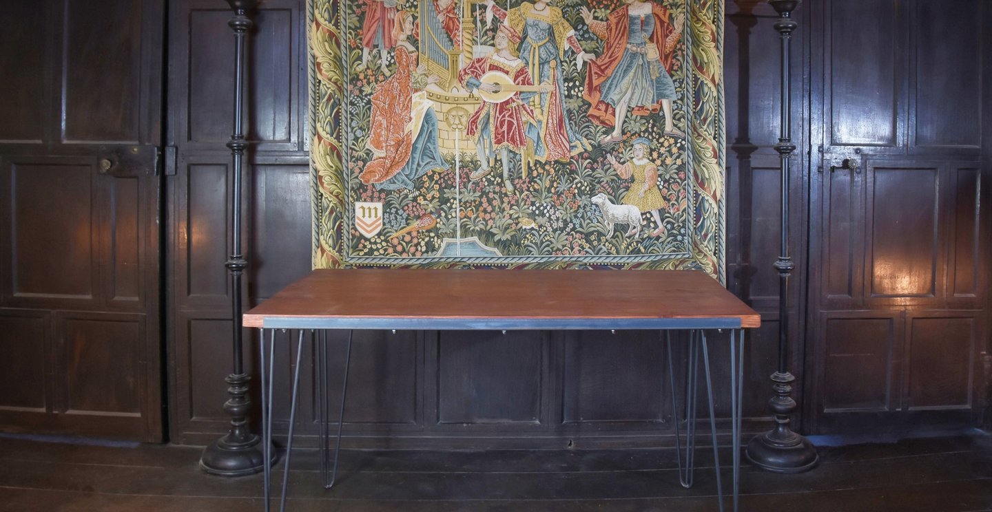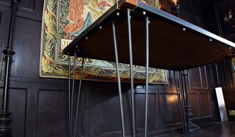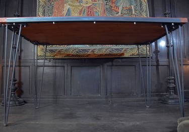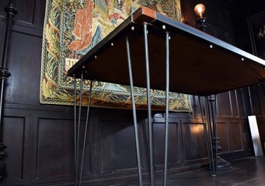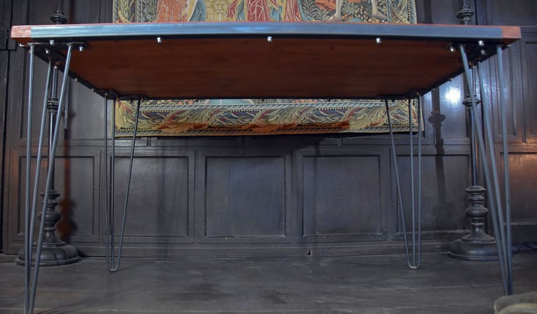 A simple yet elegant desk design combining finely sanded larch timbers with a splash of industrial aesthetic. The warm, rusted orange colour is offset by 3mm steel edge sections and polished steel acorn nuts.